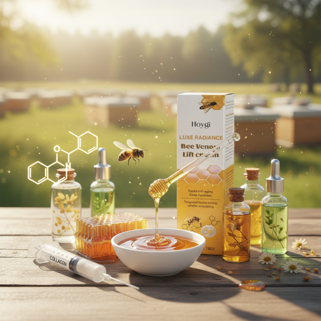Our cream uses an innovative formula featuring bee venom. This natural ingredient gently stimulates the skin, encouraging the production of collagen and elastin. The result is visibly firmer, smoother, and lifted skin. It acts like a natural "facelift," working in synergy with hyaluronic acid for hydration and peptides to smooth wrinkles.